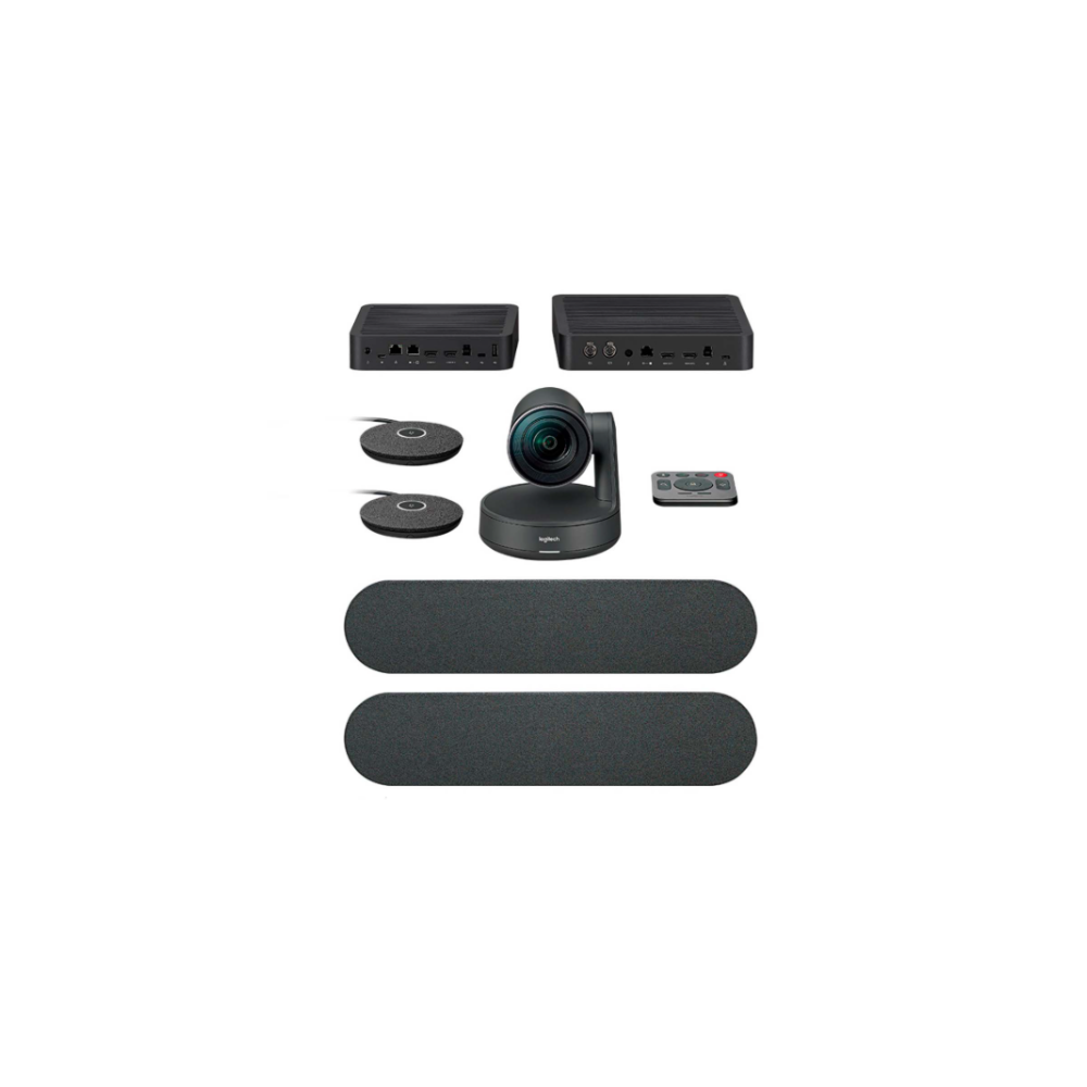 0025916 – Logitech Rally Plus Bundle: Sistema 4K Ultra-HD para Salas Grandes, Audio Modular (2 Spk – 2 Mic) y Tecnología RightSense Black